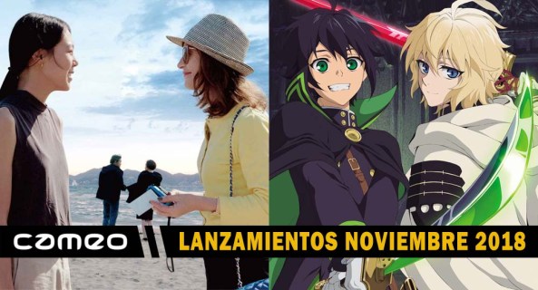 Repasamos los lanzamientos de noviembre de 2018 que la distribuidora Cameo pone a la venta, destacando los relacionados con el Cine Asiático. En colaboración con La Aventura llega «La cámara de Claire» de Hong Sangsoo y junto a Jonu Media llega la primera temporada de «Seraph of the end«.