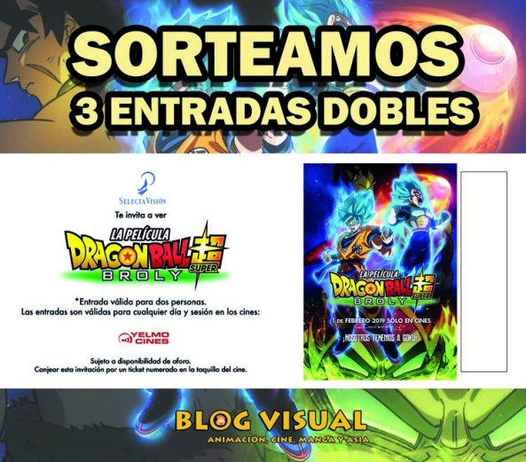 Hoy 1 de febrero de 2019 gracias a Selecta Visión se estrena en cines «Dragon Ball Super Broly«. Y para celebrarlo vamos a sortear entre todos nuestros seguidores de twitter 3 entradas dobles para canjear en cualquier Yelmo Cines. ¡Empieza el combate para el ser más poderoso del universo!