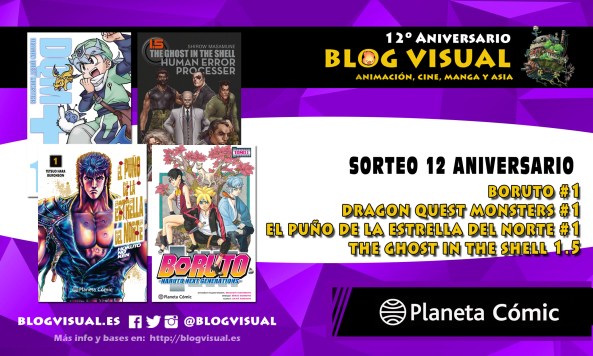 ¡Decimotercer concurso de nuestro 12 Aniversario! Gracias a Planeta Cómic sorteamos tomos de «Boruto: Naruto next generations», «El puño de la estrella del norte«, «Dragon Quest Monsters +» y «The Ghost in the Shell 1.5: Human Error Processer». ¡Más información en la noticia!
