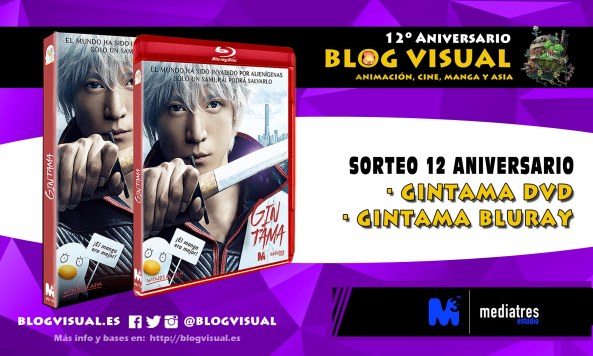 ¡Decimosexto concurso de nuestro 12 Aniversario! Gracias a Mediatres Estudio vamos a sortear entre todos vosotros un ejemplar en DVD y otro en Blu-ray de una de sus últimas licencias: «Gintama» (銀魂), dirigida por Yuichi Fukuda y basada en el manga de Hideaki Sorachi. ¡Más info. en la noticia!