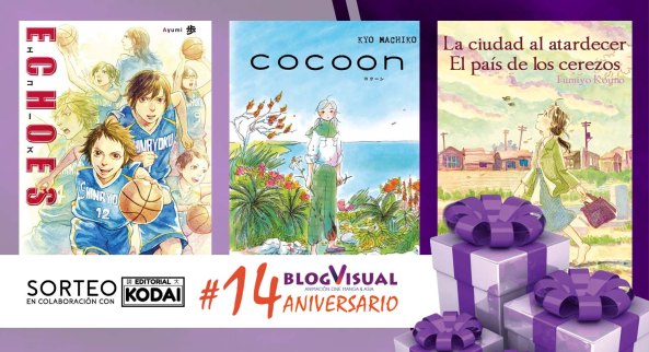 Desde Editorial Kodai se suman a la celebración de nuestro 14º Aniversario y junto a ellos vamos a sortear los tres primeros títulos manga que formaron parte de su catálogo, como son «ECHOES» de Ayumi, «COCOON» de Kyo Machiko y «La ciudad al atardecer. El país de los cerezos» de Fumiyo Kouno.