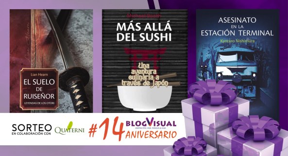 Desde Quaterni se suman a la celebración de nuestro 14º Aniversario -y ya van unos cuantos años contando con si inestimable apoyo-, por lo que vamos a sortear tres de sus títulos más recientes que pertenecen a su colección Lejano Oriente- Japón: «El suelo de ruiseñor. Leyendas de los Otori 1» de Lian Hearn, «Más allá del sushi» de Michael Booth y «Asesinato en la estación terminal» de Kyotaro Nishimura.