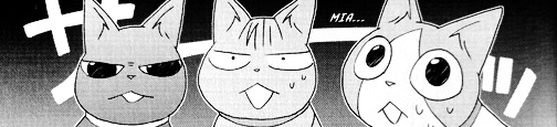 La cubierta está realizada con acabado en mate, tonalidades magenta (rosa pastel en este caso). Muy sencilla, la verdad, con un patrón de líneas verticales que contrastan entre sí y el título de la obra en la parte delantera central. La sobrecubierta es bastante más llamativa y está realizada en unos 200 gramos -acabado mate- y como podéis ver refleja a la perfección lo que vamos a encontrar en el interior (bueno no, faltan gatos). En su parte trasera mantiene el patrón de líneas de la cubierta y nos deja la sinopsis y el código de barras en la parte superior, dejando los 3/4 partes restantes (la zona de abajo) con una bonita ilustración de los gatos restantes, el logo de la editorial y un pequeño diseño que no alcanzo a identificar. En las solapas interiores vamos a encontrar el mismo patrón pero en tonos amarillos en la parte delantera y rosado en la trasera, con el gato Hatsu apareciendo en la parte inferior. El sentido de lectura elegido es el oriental, de derecha a izquierda.