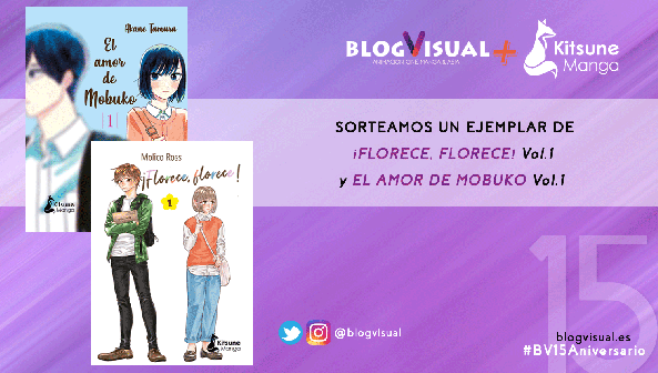 - El sorteo consiste en un ejemplar de «El amor de Mobuko nº1» y «¡Florece, florece! nº1», cortesía de Kitsune Manga.