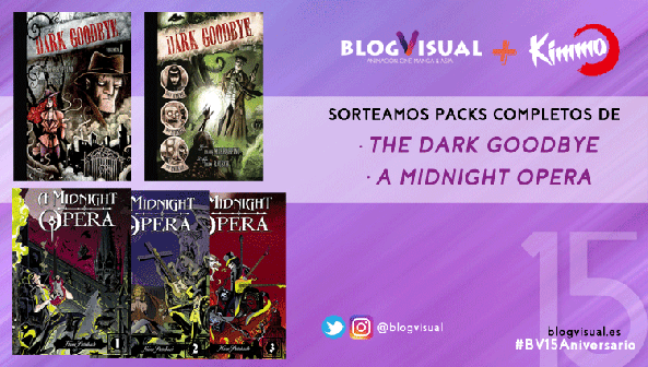 Junto a Kimmo Editorial celebramos nuestro 15º Aniversario sorteando en nuestras redes sociales las series completas “The dark goodbye” de Frank Marraffino y Drew Rausch (compuesta por 2 tomos) y “A midnight opera” de Hans ‘Hanzo’ Steinbach (compuesta por 3 tomos) . ¡Más información en la noticia!