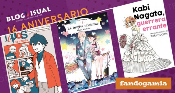 Desde Fandogamia Editorial se suman a la celebración de nuestro 16º Aniversario y por ello nos han cedido para sortear estos fantásticos títulos: “Kabi Nagata: Guerrera Errante” de Kabi Nagata, “Tipos de interés: Guía manga de tipografía occidental” de Kuniichi Ashiya y “La brujita Oficinista” (nº1) de Maka Mochida. No podemos más que agradecerles el apoyo y su participación en nuestro evento una edición más, así como desearos mucha suerte a quienes participéis.