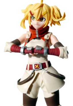 Limitada hasta agotar existencias, esta preciosa figura de aprox. 17 cm. de altura llega presentada en una caja contenedora vertical (con 18 cm. de alto, 12 de ancho y 9 de largo), en cuyo interior encontramos la figura en dos piezas (cuerpo por un lado y cabeza por otro), a lo que hay que sumar la base soporte para su exhibición. Como podéis ver una vez más nos encontramos con una figura estilizada, muy lograda y detallada, que pese a su postura estática consigue un gran dinamismo por esa pose provocadora, de estar lista para la batalla. Como podréis apreciar, Oikatzo tiene una expresión sonriente y amenazante al mismo tiempo, con los puños chocados entre sí. En cuanto a los detalles y acabados, destacamos su cabello rubio con dos coletas y dos pechones de flequillo sujetos con unas cintas/pinzas -una roja y otra amarilla-, la mirada con esos ojos de tonalidad dorada/amarilla y especialmente destacaríamos el traje de color beige claro y complementos rojos como las cintas de los guantes (metálicos), el cubre cuello o el cinturón, sin olvidarnos de los cordones laterales sujetos al cinturón o las botas y los calcetines con vendas.